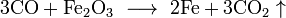 У свою чергу, монооксид вуглецю відновлює залізо з руди. Щоб реакція йшла швидше, нагрітий чадний газ пропускають черезоксид заліза(III):