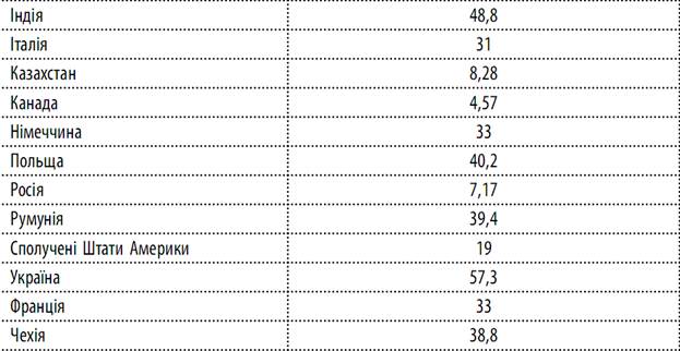 Рівень розораності сільськогосподарських угідь областей України Рівень розораності сільськогосподарських угідь країн світу