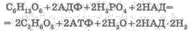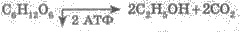 У процесі розпаду глюкози беруть участь 13 різних ферментів. Під час гліколізу виділяється 200 кДж енергії. 84 кДж використовується на синтез 2-х молекул АТФ, а решта (116 кДж) використовується у вигляді теплоти. Значення гліколізу: організм дістає енергію в умовах дефіциту кисню. Спиртове бродіння — тип перетворення глюкози, коли вона розпадається на дві молекули етилового спирту (С2Н5ОН). та дві молекули вуглекислого газу (СО2):