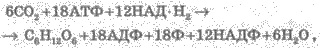 Протони Н+, приєднуючи електрони з високим рівнем енергії, перетворюються на атомарний Гідроген, який використовується у наступних реакціях фотосинтезу. 2. Перетворення енергії електронів на енергію АТФ. Оскільки під час фотосинтезу в макроергічних зв’язках АТФ акумулюється енергія світла, процес її утворення називається фотофосфорилюванням. 3. Відновлення універсального біологічного переносника Гідрогену НАДФ+ до НАДФ ∙ Н. Таким чином, у результаті світлової фази фотосинтезу утворюються АТФ з АДФ; НАДФ+ відновлюється і утворюється НАДФ ∙ Н; виділяється молекулярний кисень; АТФ і НАДФ ∙ Н використовуються у темновій фазі фотосинтезу. Темпова фаза фотосинтезу, або цикл Кальвіна, — ряд послідовних реакцій, що супроводжуються поглинанням вуглекислого газу і утворенням вуглеводів, відбувається в стромі хлоропласта. Ці реакції можуть відбуватися і на світлі, і в темряві. СО2, який надходить із зовнішнього середовища, вловлюється п’ятикарбоновими органічними сполуками, що містяться у хлоропластах рослин; при цьому утворюється нестійка шестикарбонова сполука, що швидко розщеплюється на дві трикарбонові молекули. У результаті семи послідовних ферментативних реакцій з використанням енергії АТФ і НАДФ-Н утворюється шестикарбонова молекула глюкози. Сумарне рівняння реакції темнової фази: