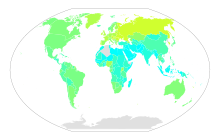 Потребление алкоголя на душу населения в год по странам мира. Данные на 2005 год > 19 л 15 л 10 л 5 л < 0.2 л нет данных