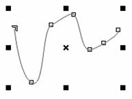 Побудова ліній Щоб побудувати криву лінію, необхідно: Клікнути на кнопку Свободная рука в панелі інструментів. Курсор при цьому поміняє форму на хрестик з хвилястою лінією. Помістити курсор в місце початку лінії, натиснути ліву кнопку мишки і вести лінію довільної форми. Якщо виділити лінію, навколо неї нее встановиться 8 маркерів, а в центрі прямокутного виділення встановиться хрестик. Якщо взяти мишкою кутовий маркер (натиснути на ньому лівою кнопкою мишки) і переміщувати його, розміри лінії будуть пропорційно змінюватися.