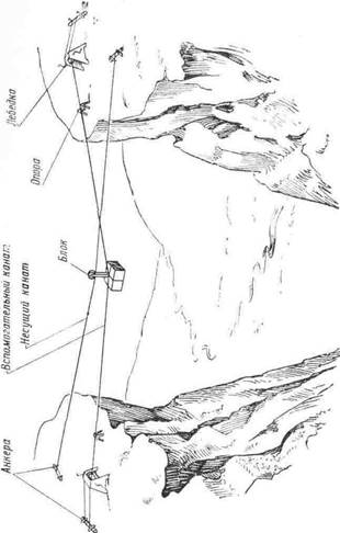 Рис. 29. Схема переправы грузов через ущелье.