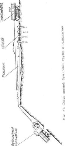 Рис. 30. Схема подъема и спуска грузов через обрывы и крутые склоны гор