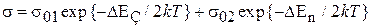 де При наявності домішок в напівпровіднику провідність при низьких температурах буде, в основному, зумовлена електронами або дірками домішки, тому що При підвищенні температури концентрація домішкових носіїв досягає насищення. Це означає, що заповнюються всі донорні або всі акцепторні рівні. Подальше зростання температури приводить до більшого впливу власної провідності. Тому електропровідність напівпровідника складається із власно і домішкової
