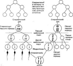 г) Один спермій зливається з ________, другий з __________. Із заплідненої яйце-