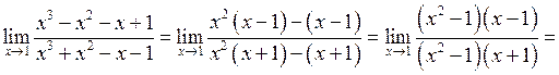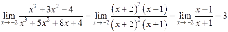 Тут також має місце невизначеність типу . Розкладемо чисельник і знаменник на множники. Це розкладання можна здійснювати діленням чисельника і знаменника в стовпчик на (зокрема, за схемою Горнера), або групуванням доданків у чисельнику і знаменнику.