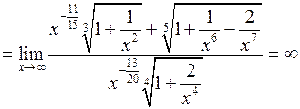 Поділимо чисельник і знаменник на . Тоді вираз під квадратним коренем поділиться на , а під кубічним – на . Отримаємо: