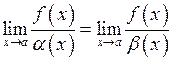 Ця границя використовується для розкриття невизначеностей типу . Здійснюється це наступним чином. Нехай – нескінченно малі при . Розглянемо границю: