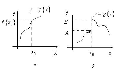Якщо розглянути точку на цих графіках, то помітимо, що функція визначена у цій точці, і, якщо змінити значення на малу величину, то значення функції теж зміниться на малу величину. З іншими функціями на рис. 33 така ситуація не спостерігається. Функція змінюється стрибкообразно при переході через точку . Значення функції прямують до нескінченності при . А функція не визначена у точці , хоча має у цій точці скінчені однобічні границі.