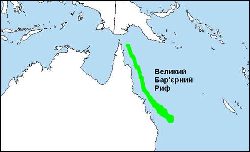 Якщо це місцевість – заштриховують або замальовують місцевість і територію, а потім підписують її. Приклад: позначення на карті Великого Бар’єрного рифу.