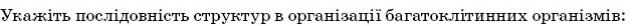 D. моносахарид; A. аденін; B. цитозин; C. тимін; D. урацил. 9.Функція клітинного центру: A. синтез білків; B. синтез ДНК; C. синтез РНК; D. утворення мікротрубочок; 10.Рибосоми належать до органел: A. одномембранних; B. дво-мембранних; C. немембранних. D. Ядерних 11.Вказати, яке з наведених нижче визначень відповідає поняттю «пластичний обмін» (асиміляція): A. Сукупність усіх реакцій біосинтезу, які здійснюються з поглинанням енергії B. Розщеплення і окиснення органічних сполук, яке супроводжується виділенням енергії. C. Живлення D. Виділення 12.Другий закон Г. Менделя - це закон про: A. розщеплення ознак у співвідношенні 3:1; B. різноманітність гібридів першого покоління; C. одноманітність гібридів першого покоління; D. чистоти гамет 13.Генна інженерія є галуззю: A. ботаніки; B. генетики; C. зоології D. гістології. 14.Онтогенез - це розвиток організму: A. індивідуальний; B. історичний; C. ембріональний D. післянародження. 15. Вкажіть, який хімічний елемент у складі зубних піст використовують для профілактики карієсу A. Со B. К C. F D. Н 16.Вкажіть рівень організації життя, який вивчає гістологія A. Молекулярний B. Клітинний C. Тканинний D. Популяційний 17.Вкажіть водорозчинний вітамін A. С B. А C. К D. Е 18.Що таке четвертинна структура білка A. Ланцюг амінокислотних залишків B. Спіраль C. глобула D. обєднання окремих глобул 19.Вкажіть, яка структура входить до клітинних включень A. рибосоми B. вакуолі C. гранули глікогену D. лізосоми 20.Вкажіть як називають нового організму з незаплідненої яйцеклітини A. поліембріонія B. ембріогенез C. партеногенез D. біогенез Другий рівень