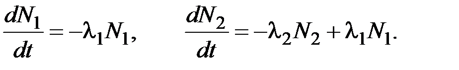 Проте такий закон справедливий лише для випадку, коли дочірні ядра є стабільними. У решті випадків буде спостерігатися подальший розпад утворених ядер, для яких стала розпаду є іншою. Таку послідовність розпаду описують системами диференційних рівнянь:
