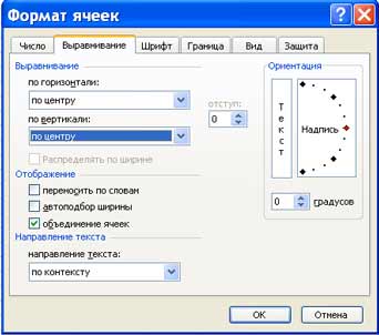 3. Для введення заголовка таблиці необхідно встановити курсор в комірку A2 і ввести назву таблиці «Залишки товарів на складі». 4. Виділити комірки A2:G2 і виконати команду Формат/Комірки, на вкладці Вирівнювання вибрати спосіб вирівнювання по центру і встановити прапорець об'єднання комірок, натиснути ОК.