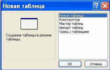 Проте якщо у вікні «Створення таблиць» немає необхідного зразка таблиці, то необхідно вибрати режим Конструктора, відкриється вікно Конструктора таблиць