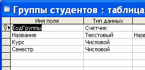 Далі створюються структури решти таблиць: Групи студентів, Дисципліни, Успішність.