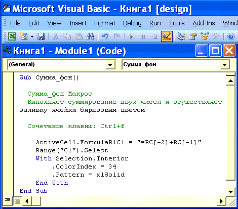 Після закінчення запису макросу він з'являється в списку макросів під своїм ім'ям. Редактор VBA автоматично записав послідовність макрокоманд або програму по виконаних діях: