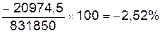 Вплив обсягу виробництва: 810875,5 – 831850,0 = – 20974,5 (грн.)