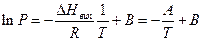 7. З величини коефіцієнта А, визначеного за МНК, обчислити більш точне значення мольної теплоти випаровування і порівняти з величиною, знайденою із експериментального графіка за схемою п. 5.