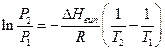 Наприклад, для CCl4 за T1 = 313 К і T2 = 323 К; P1 = 216 мм рт. ст. і P2 = 317 мм рт. ст.