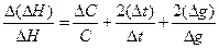 де g - наважка солі, що зважена на технічних терезах з точністю Dg. Примітка. Зважування на технічних терезах наважки масою 10 г з точністю ±10-3 дає похибку 0,02%; якщо дослід продовжується до 5 хв, то можна отримати кінцевий результат з похибкою не гірше 1,0%. Основним фактором, що впливає на величину похибки у визначенні DHгідр є точність вимірювання температури. Справді, якщо за допомогою термометра Бекмана обчислюють значення температури з точністю ±0,003°С, а при графічному визначенні Dt ця величина зростає майже вдвічі (наприклад, ±0,005°С), то за найбільш сприятливих умов, коли