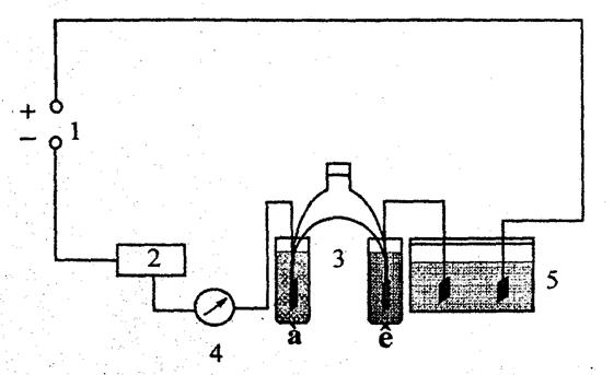де Dna - збільшення вмісту сірчаної кислоти в анодному просторі, а Dnk - зменшення вмісту сірчаної кислоти в катодному просторі. Загальна кількість електрики, що пройшла через розчин, визначається за допомогою кулонометрів. Мідний кулонометр (ваговий) складається з мідних електродів - пластинок, занурених в розчин електроліту такого складу: CuSO4·5H2O – 150 г/л; H2SO4 – 50 г/л; C2H5OH – 50 г/л. На межі поділу електрод - електроліт відбуваються процеси