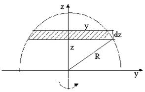 Заштрихована частина кулі має форму диска радіусом у і товщиною dz. Момент інерції виділеного диска відповідно до (4.2.3) дорівнює