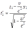 Для знаходження залежності tо від t скористаємось перетвореннями координат Лоренца (5.1.7)