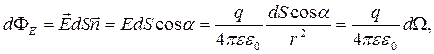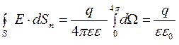 Інтегруємо цей вираз у межах замкнутої поверхні і повного тілесного кута для цієї поверхні, тобто