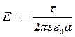 На довільній відстані x від стрижня напруженість електричного поля розраховується або за принципом суперпозиції (методом інтегрування), або за теоремою Гаусса. Скористаємось готовою формулою напруженості електричного поля (6.3.15) попередньої лекції E =