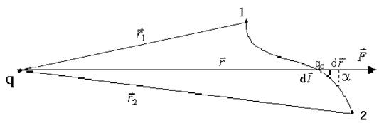 З формули (7.1.2) видно, що робота переміщення точкового заряду qо із точки 1 в точку 2 поля статичного заряду q не залежить від форми шляху, а визначається лише положенням початкової й кінцевої точок. Цей висновок є доказом того, що поле точкового заряду є потенціальним, а діючі в цьому полі сили є консервативними.