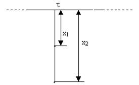 2. Потенціали поля в двох точках біля довгого, рівномірно зарядженого стрижня з лінійною густиною зарядів t у відповідності з рисунком (рис. 7.5)