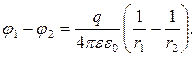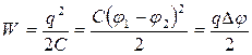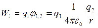 де φ1,2 – потенціал першого заряду в полі другого заряду; φ2,1 – потенціал другого заряду в полі першого заряду. Оскільки енергії