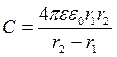 Вираз (8.2.14) підставимо у (8.2.4), одержимо ємність сферичного конденсатора
