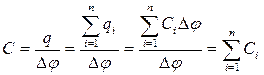 У випадку, коли до батареї конденсаторів прикладена стала різниця потенціалів (Dj = const), будемо мати: а). паралельне з’єднання конденсаторів