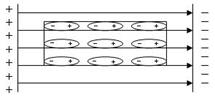 При внесенні полярного діелектрика у зовнішнє електричне поле він буде поляризуватись. Суть поляризації діелектрика зводиться до орієнтації полярних молекул у напрямку силових ліній електричного поля. Схематично цей процес можна подати за допомогою рис. 9.2.