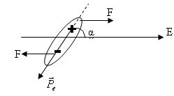 Під дією цих моментів молекула повертається і займає положення, при якому її дипольний момент направляється по лінії напруженості (рис.9.4).