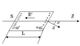 Під дією зовнішнього електричного поля у діелектрику відбудеться зміщення електричних зарядів з утворенням поля Е¢. На торцях циліндра появляються заряди +s¢S і -s¢S. Відстань між цими зарядами дорівнює L. Тому електричний момент циліндра буде дорівнювати s¢SL. Але з другого боку електричний момент всього циліндра чисельно дорівнює значенню суми векторів моментів всіх молекул циліндра, тому