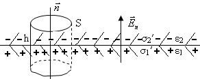 | де Скористаємося теоремою Гаусса до замкнутої поверхні у вигляді циліндра з стороною h паралельною до вектора