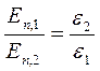 Нормальні складові електричного зміщення на межі поділу двох діелектриків не розриваються. З урахуванням того, що Dn,2 = e2e0En,2, а Dn,1 = e1e0En,1, одержуємо: