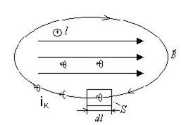Рис.14. 4 Замкнутий контур, показаний на рис.14.4, охоплює певну кількість атомних струмів іk, а також струм провідності І. Знайдемо циркуляцію вектора