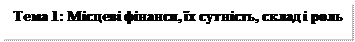 Тема 8: Основи організації фінансів місцевих Основні типи систем місцевого самоврядування. Найважливіші проблеми фінансів місцевого самоврядування. Міжнародні стандарти організації місцевих фінансів і місцевих бюджетів. Зміст та значення Європейської хартії місцевого самоврядування. Склад фінансових ресурсів органів місцевої влади зарубіжних країн. Доходи і видатки місцевих бюджетів. Фінансове вирівнювання та його роль у розвитку територій. Місцеве оподаткування за кордоном. Роль надходжень від місцевих податків і зборів у формуванні доходів місцевих бюджетів зарубіжних країн. Досвід комунального кредиту. Місцеві позики: особливості випуску, розміщення та обігу, роль у формуванні фінансових ресурсів органів місцевої влади. Фінанси муніципальних підприємств. Форми залучення громадян до управління місцевими справами в зарубіжних країнах.