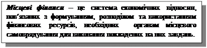 Таким чином у розглянутих вище визначеннях категорії місцевих фінансів, а також у запропонованому нами можна відзначити наступні характерні особливості: 1) місцеві фінанси представляються як система економічних відносин, пов’язаних з розподілом і перерозподілом вартості валового внутрішнього продукту; 1) в процесі здійснення цих відносин відбувається формування, розподіл і використання фінансових ресурсів; 2) цільова підпорядкованість даної системи відносин – забезпечення органів місцевого самоврядування фінансовими ресурсами, необхідними для виконання покладених на них функцій і завдань. Розподільча функція місцевих фінансів знаходить свій прояв у порядку формування доходів і видатків місцевих бюджетів, цільових фондів органів місцевого самоврядування, за допомогою яких проходить складний процес забезпечення їх фінансовими ресурсами, необхідними для виконання покладених на місцеве самоврядування функцій і завдань. Кошти, які акумулюються в місцевих бюджетах і цільових фондах розподіляються і використовуються на задоволення різноманітних місцевих потреб. Крім того, через систему міжбюджетних відносин фінансові ресурси, акумульовані на обласному і районному рівні перерозподіляються між окремими адміністративно-територіальними одиницями з метою проведення фінансового вирівнювання. Контрольна функція місцевих фінансів реалізується, зокрема, в діяльності органів місцевого самоврядування при складанні проектів місцевих бюджетів, їх розгляді і затвердженні, а також виконанні і складанні звіту про виконання місцевих бюджетів. Сфера дії контрольної функції не обмежується місцевими бюджетами, а включає інші фонди грошових коштів та загалом усі фінансові ресурси, які знаходяться в розпорядженні місцевого самоврядування. Контрольна функція місцевих фінансів спрямована на забезпечення передбачених пропорцій розподілу і перерозподілу фінансових ресурсів, їх цільове і економне використання. Стимулююча функція місцевих фінансів полягає у створенні таких умов, за яких органи місцевого самоврядування стають безпосередньо зацікавленими у збільшенні обсягів доходів бюджетів, додатковому залученні надходжень як загальнодержавних, так і місцевих податків і зборів, пошуку альтернативних доходів, ефективному використанні фінансових ресурсів, які поступають у їх розпорядження. Реальним втіленням стимулюючої функції є діючий порядок формування власних доходів місцевих бюджетів, заохочення перевиконання запланованих показників надходжень загальнодержавних податків і зборів, самостійність у використанні додатково залучених коштів та ін. Сутність місцевих фінансів, як економічної категорії, та зміст їх функцій знаходять свій прояв у складі місцевих фінансових інститутів, до яких належать: місцеві бюджети, місцеві податки і збори, цільові фонди органів місцевого самоврядування, місцеві запозичення, комунальний кредит об’єкти комунальної власності. Розглянемо більш детально основні положення Конституції України та Закону України від 21 травня 1997 р. «Про місцеве самоврядування в Україні» щодо сутності, принципів місцевого самоврядування та особливості його функціонування в Україні. Прийнята 28 червня 1996 р. Конституція України закріпила існування місцевого самоврядування, яке визнається і гаран