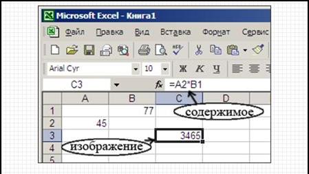 Рисунок 2.1 – Вміст і зображення вмісту чарунки в MS Excel
