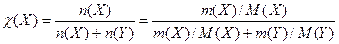 де Х – розчинена речовина; m(X) – маса речовини, г; mРОЗЧ. – маса розчину, г. Одиниця вимірювання відносна. Допускається виражати масову частку речовини у частках одиниці або відсотках. ω(X) в % називається також відсотковою концентрацією й дорівнює масі речовини в 100 г розчину. 2. Молярна частка розчиненої речовини X у розчині — це відношення кількості речовини X (в молях), що міститься у цьому розчині, до загальної кількості речовин у розчині (в молях):
