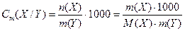 Наприклад: 1М розчин Н2SO4 відповідає 2н. розчину Н2SO4 (Z= 2); 0,06 М розчин Н2SO4 відповідає 0,12 н. розчину Н2SO4 (Z= 2); 0,1 н. розчин KMnO4 (KMnO4 = 5) відповідає 0,02М розчину KMnO4. 5. Моляльність розчиненої речовини в розчині (застаріла назва „моляльна концентрація” розчиненої речовини) – це відношення кількості речовини n(X) (в молях), що міститься у розчині, до маси m розчинника Y (в кг) цього розчину: