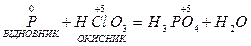 Приклад. Методом електронного балансу розставте коефіцієнти в рівнянні окисно-відновної реакції: Р + НСlО3 + Н2O = Н3РO4 + НС1. На початку складання рівняння реакції визначаємо елементи, що змінили ступінь окиснення, і складімо електронний баланс процесів окиснення й відновлення: