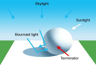 Sometimes light seems to behave as though it carries energy in waves. Other times it seems to carry energy in particles or packets, called photons, fired off in quick succession from the source. Scientists argued for many years over whether light was really a wave or a particle. Now they agree that light can behave as either a wave or a particle, depending on the situation. The powerful beam from a lighthouse illustrates that light travels in straight lines. Under normal circumstances, light never bends or goes round corners but travels in a perfectly straight path, making what is known as a light ray. Nothing can travel faster than light. The beam from a lighthouse travels its full length in a tiny fraction of a second. Some objects transmit light better than others. Transparent objects, such as glass, let virtually all light rays pass straight through them. When you look at a glass of orange juice, you can see the juice inside very clearly. You can also see other things through the glass. Translucent objects, such as plastic, allow only part of the light through. A plastic bottle lets some light rays pass through it. It is possible to see the orange juice inside the bottle, but you cannot see anything behind the bottle. Opaque objects, such as metal, reflect all the light falling on them and allow none to pass through. When you look at a can of orange juice, all you can see is the can. It is impossible to tell, just from looking, whether or not the can has any orange juice in it. Things that give off light are called light sources. When we see something, light rays have travelled from a source of light into our eyes. Some objects appear bright to us because they give off energy as light rays; these objects are said to be luminous or light-emitting. Other objects do not make light themselves, but appear bright because they reflect the light from a light source. The Sun shines because it produces energy deep in its core. The energy is made when atoms join together in nuclear fusion reactions. The Sun fires off the energy into space in all directions in the form of electromagnetic radiation. Some of the radiation travels to Earth as the light and heat we know as sunlight. The Sun is a luminous light source because it makes energy inside itself. The Moon shines much less brightly than the Sun. Unlike the Sun, the Moon does not generate its own energy, so it produces no light of its own. We can see the Moon only because its grey-white surface reflects sunlight towards Earth. If the Earth passes between the Sun and the Moon, the Moon seems to disappear from the sky. This is called a lunar eclipse. Some sea organisms can make their own light. This ability is called bioluminescence, which means making light biologically. Transparent polychaete worms such as this one make yellow light inside their bodies. In their dark seawater habitat they can glow or flash to scare off predators. Other bioluminescent sea creatures include shrimps, squid, and starfish Shadows are made by blocking light. Light rays travel from a source in straight lines. If an opaque object gets in the way, it stops some of the light rays travelling through it, and an area of darkness appears behind the object. The dark area is called a shadow. The size and shape of a shadow depend on the position and size of the light source compared to the object. When you stand with the Sun behind you, the light rays that hit your body are blocked and create a shadow on the ground in front of you. When the Sun is high in the sky at midday, your shadow is quite short. Later on, when the Sun is lower, your shadow is much longer. Shadows are not totally black. If you look closely at a shadow, you will see a dark area in the centre and a lighter area around it. The central dark area, called the umbra, occurs where rays of light from the source are totally blocked. The outer area, called the penumbra, is lighter because some rays do get through.
