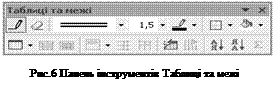 · створення ефекту вручну засобами меню і панелі інструментів (рис.9); · Вручну за допомогою меню або кнопок панелі інструментів можна підібрати таке: ¨ шрифт, його розмір, стиль написання; ¨ тип та колір ліній (Border); ¨ кольори букв; ¨ колір заливки, а також візерунки або рисунки, які можна використовувати як заливку; ¨ повороти та форму накреслення тексту тощо. Гіперпосилання — це засіб для налагодження зв’язку між документами. Якщо у файл вставити гіперпосилання на інші файли, то можна мати доступ відразу до двох і більше файлів, не вставляючи їх один в одного. Гіперпосилання — це виконаний іншим кольором об'єкт (підкреслений текст чи картинка), який містить адресу іншого файлу. Клацнувши раз на гіперпосиланні, можна відкрити потрібний файл. Хід роботи Таблиці будуватимемо трьома різними способами. 1. Завантажте текстовий редактор. 2. У новому текстовому документі введіть заголовок таблиці: Таблиця 1. Шанси претендентів. Відцентруйте текст у рядку і перейдіть на новий рядок. 3. Вставте таблицю. Таблица Þ Вставить Þ Таблицу... Þ Задайте кількість стовпців і рядків Þ ОК. 4. Ввівши дані, виокремте усю таблицю і натисніть кнопку По центру. 5. Вставте діаграму. Виберіть усю таблицю (але без заголовка) і виконайте такі команди: Вставка Þ Рисунок Þ Диаграмма. Закрийте вікно електронної таблиці. Якщо потрібно, змініть розміри чи перемістіть діаграму. 6. Введіть заголовок таблиці: Таблиця 2. Наші нові ціни. Нарисуйте таблицю з потрібною кількістю стовпців і рядків. Тип лінії — подвійна, товщина — 1 мм, колір — зелений. 7. Введіть дані і відцентруйте їх. Вставте діаграму для таблиці 2. 8. Введіть заголовок третьої таблиці: Таблиця 3. Мої друзі. Перейдіть на новий рядок. 9. Введіть текст таблиці 3. Текст треба вводити, наприклад, так: Прізвище,Ім'я,Вік,Місто,Адреса,Телефон Гнатик,Богдан,16,Чернівці,Головна 66/22,543455 Фаст,Сашко,17,Львів,Джерельна 23/76,334455 Снігур,Ігор,15,Нью-Йорк,Бродвей 34567,88667744 10. Перетворіть текст у таблицю. Виокремте текст і виконайте відповідну команду. 11. Заголовки стовпців затініть. Виокремте перший рядок Þ Формат Þ Границы и заливка... Þ Перейдіть на закладку Заливка Þ Виберіть тінь 10% (список Тип) Þ ОК. 12. Клітинки з даними зробіть жовтими. Виокремте рядки з даними Þ Формат Þ Границы и заливка..Þ Закладку Заливка Þ Виберіть колір жовтий Þ ОК. Проекспериментуйте з візерунком (дії аналогічні до попередніх, лише вибираємо додатково тип візерунку). 13. 3мініть тип ліній на подвійний товщиною 1,5 пт. Виокремте рядки Þ Формат Þ Границы и заливка.. Þ Закладку Граница Þ Виберіть тип подвійний, ширина 1,5 птÞ ОК. 14. Сторінку обведіть рамкою-рисунком — червоні яблука. Формат Þ Границы и заливка …Þ Закладку Страница Þ Виберіть з меню Рисунок: малюнок з яблуками Þ ОК. 15. Упорядкуйте дані в таблиці 3 так, що прізвища були за алфавітом. Виокремте дані в таблиці (всі, окрім першого рядка) і виконайте дії: Таблица Þ Сортировка... Þ У діалоговому вікні виберіть номер стовпця (Спочатку за: стовпцем 1) і режим По возростанию (або натисніть на кнопку Сортировка по возростанию). 16. Упорядкуйте дані в таблиці 3 за віковим старшинством осіб. 17. 3бережіть документ у файлі з назвою Прізвище5.doc. 18. Створіть новий текстовий файл. 19. Введіть такий текст: Рекламна сторінка фірми. 20. Перейдіть на наступний рядок, де введете назву фірми: Вставка Þ Рисунок Þ Объект WordArt Þ Виберіть зразок у вікні Коле