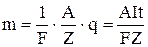 де А – атомна маса речовини; Z – валентність речовини; с – універсальна стала. Відношення Дослідним шляхом Фарадей встановив, що для виділення на електроді одного хімічного еквівалента будь-якої речовини необхідно через розчин електроліту пропустити певний заряд (F). Стала Фарадея F дорівнює заряду на кожний моль виділеної на електроді речовини при проходженні струму через електроліт. F = 9,65 · 104 Таким чином, стала Фарадея дорівнює величині заряду, при проходженні якого через електроліт на електроді виділяється 1 кілограм-еквівалент речовини. Рівняння (4) можемо записати так: